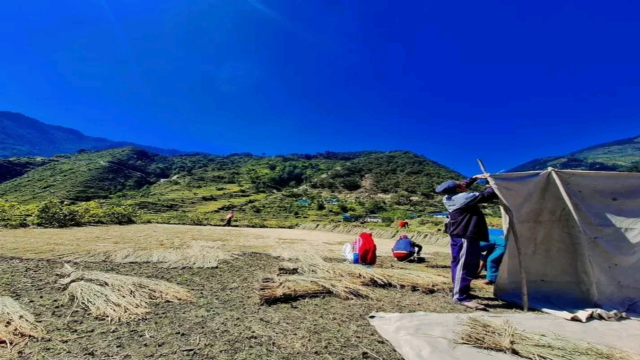 असाडकाे महिना लायाकाे धानबाली अहिल काटी सक्या पछि लागालाग गरेर चुट्ने काम चल्याकाे छ । काहिँ बाँकी रह्याका ठाैँर भन्या धान काट्ने काम चल्याकै छ । यहीँ ठाैँरका गाउँबस्तीमा सप्पै किसान बाली भित्र्याउन्या काममा लागी पर्याका छन्।