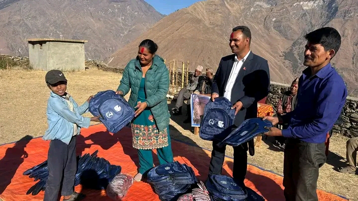 नेपालका साथिहरु ( Friends of Nepal ) नामक संस्था र हिमाली गाउँपालिकाकाे सहकार्यमा नागरिक सेवा सराेकार मन्च बाजुराकाे समन्वयमा उक्त सामाग्री वितरण गरिएको हाे।गाउँपालिकाकी उपाध्यक्ष राजकला सार्कीले विद्यार्थी र अभिभावक झाेला सहित ढाँकाटाेपी वितरण गरेकी हुन्।