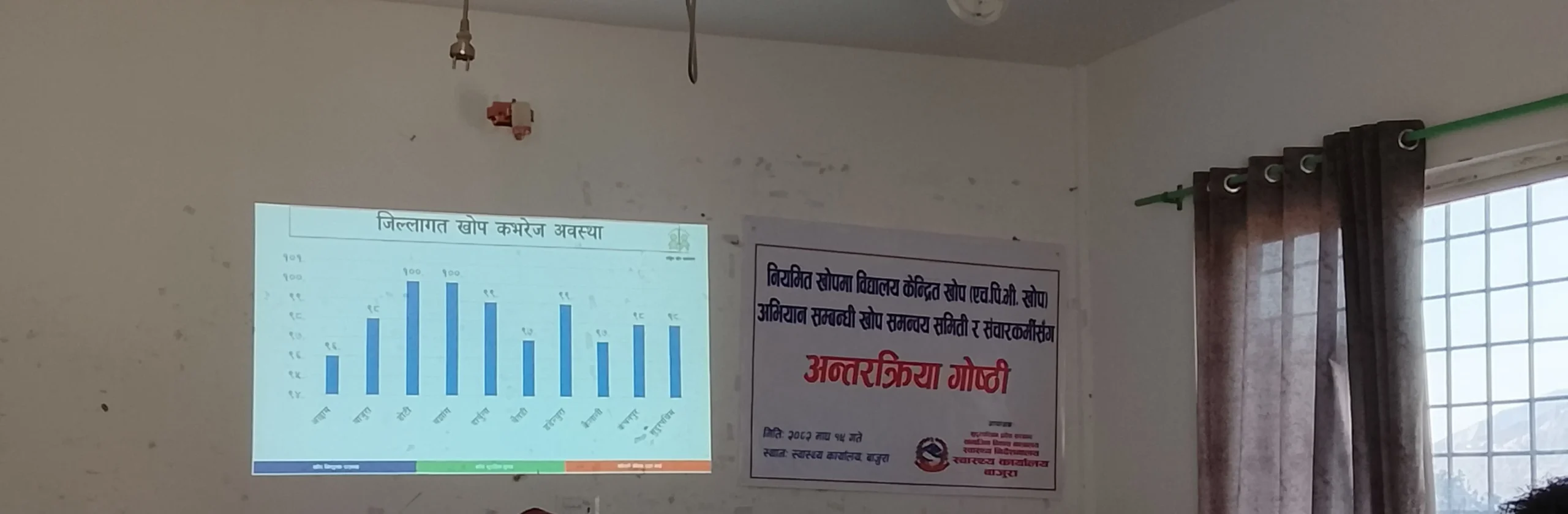 जिल्ला खोप समन्वय समिति अध्यक्ष तथा समन्वय समिति प्रमुख तुलसीराम रोकायाको अध्यक्षतामा सञ्चालन भएको सहायक प्रमुख जिल्ला अधिकारी लक्ष्मण पुडासैनी, बडीमालिकाका नगर प्रमुख अमर खड्का,उद्योग बाणिज्य सङ्घ बाजुराका अध्यक्ष देव बहादुर राेकाया,स्वास्थ्य कार्यालयका निमित्त प्रमुख लाल बहादुर खड्का,सुरक्षा निकायका प्रमुख एवं प्रतिनिधि, विभिन्न सरकारी तथा गैरसरकारी कार्यालयका प्रमुख एवं प्रतिनिधि लगायत सञ्चारकर्मीहरुको उपस्थिति रहेको थियो ।कार्यक्रमको सञ्चालन स्वास्थ्य कार्यालयका कर्मचारी प्रशान्त जोशीले गरेका थिए ।