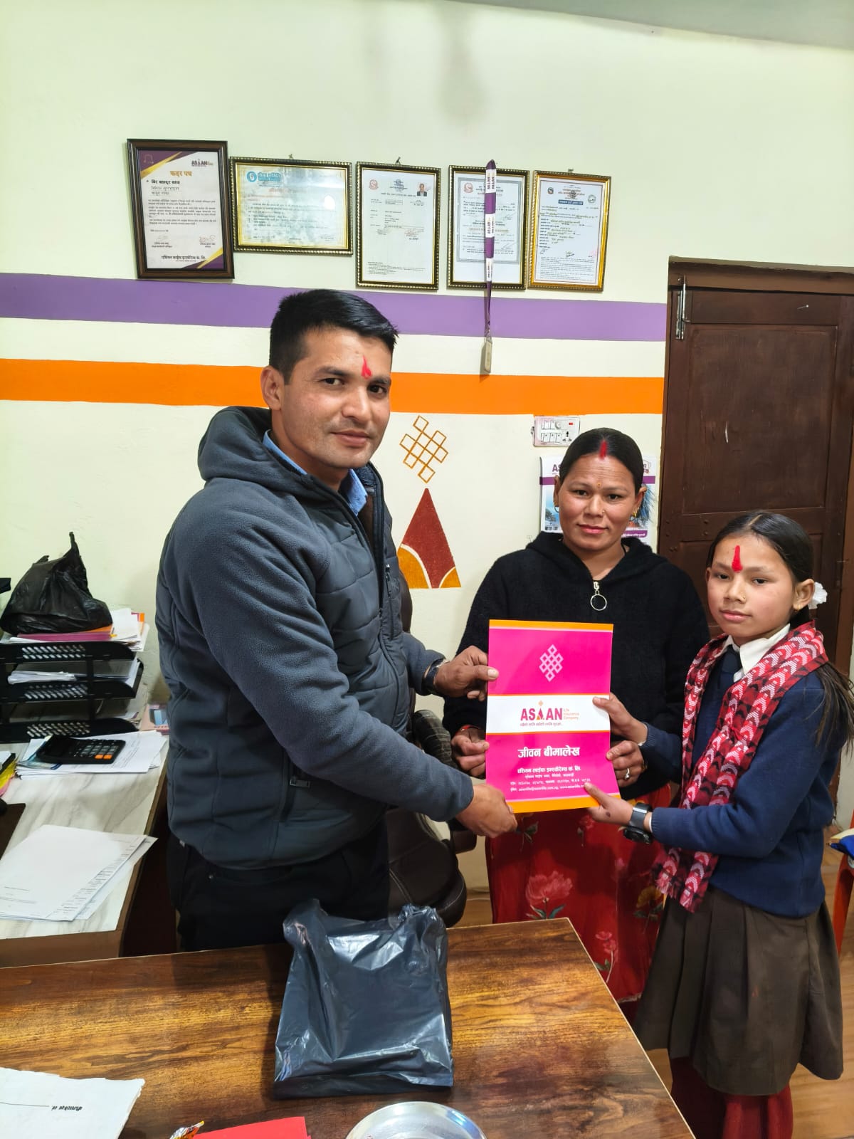 बुधबार एशियन लाईफ इन्स्योरेन्स शाखा कार्यालय बाजुराका प्रमुख बिर बहादुर थापाले बीमालेख फाईल हस्तान्तरण गर्दै विमालेख गरेकाेमा धन्यवाद दिएका हुन्। साथै उनले बीमामा जम्मा हुने पैसाले छोरीकाे भविष्यमा उच्च शिक्षा आर्जन गर्न ठुलाे सहयाेग पुग्ने बताएका हुन्।
